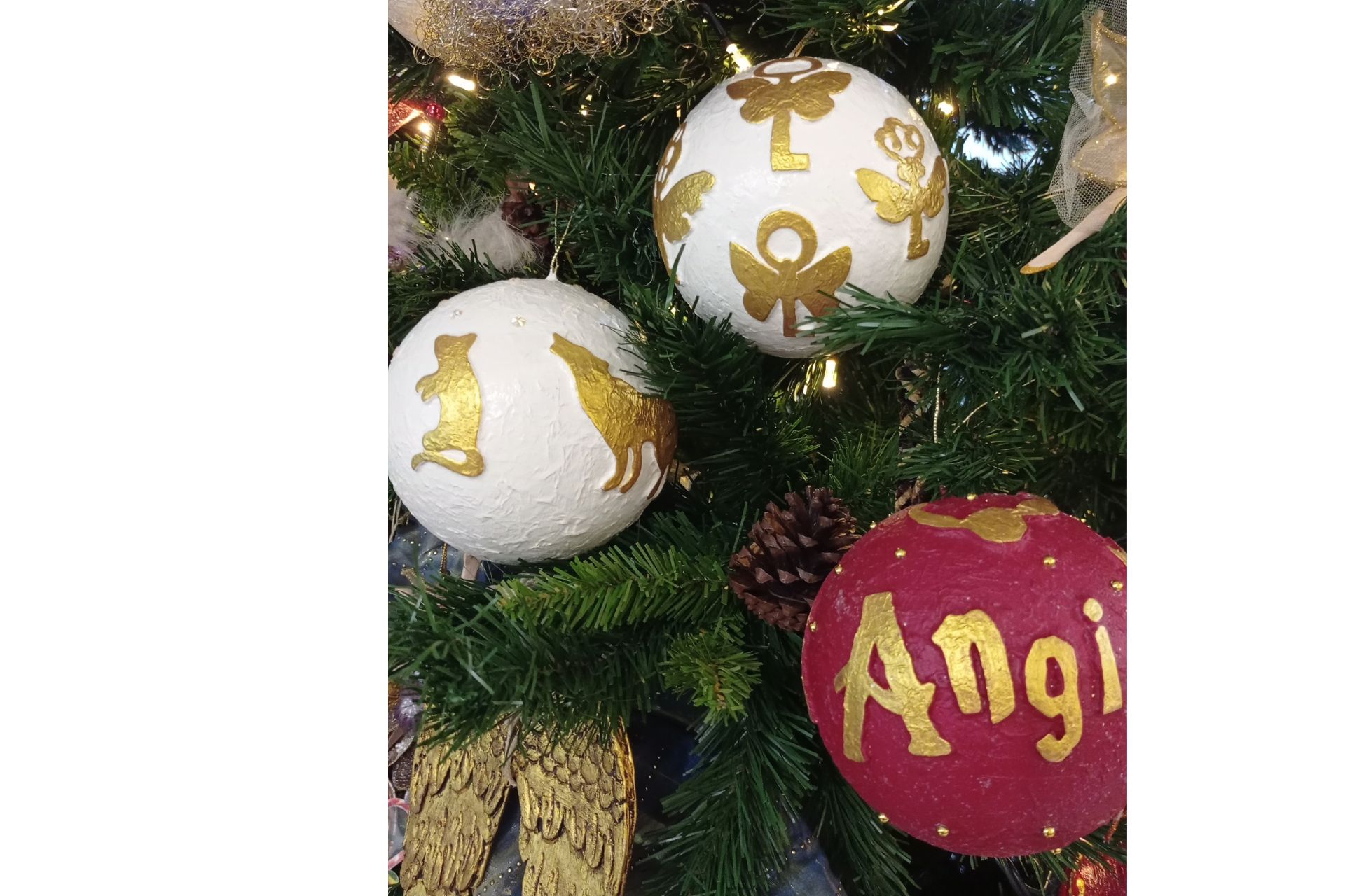 Bolas, cuadros personalizados de nombres, puntas de árbol y alguna cosa que esta en proyecto.