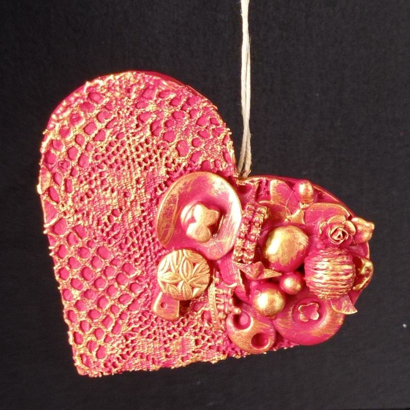 Corazón con abalorios pintado a mano y patinado. Mide aprox.16x15x02cm. Cada pieza es única.