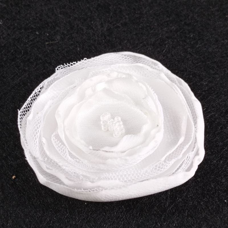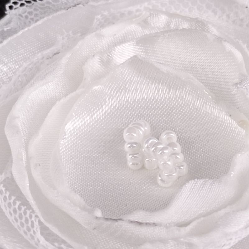 Elegante flor de tela en color blanco y tul, con pinza para el pelo.