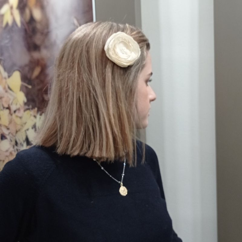 Sé el primero en valorar “Flor tela niña pelo con pinzas blanca”