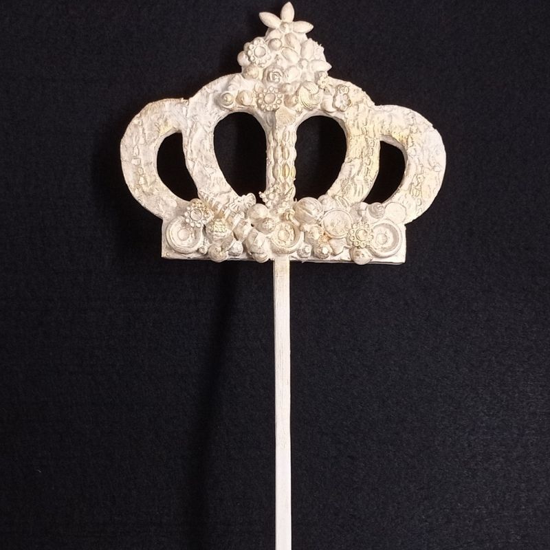 La corona mide 21 x 18 cm sin el soporte. Medida total 21 x 43 cm