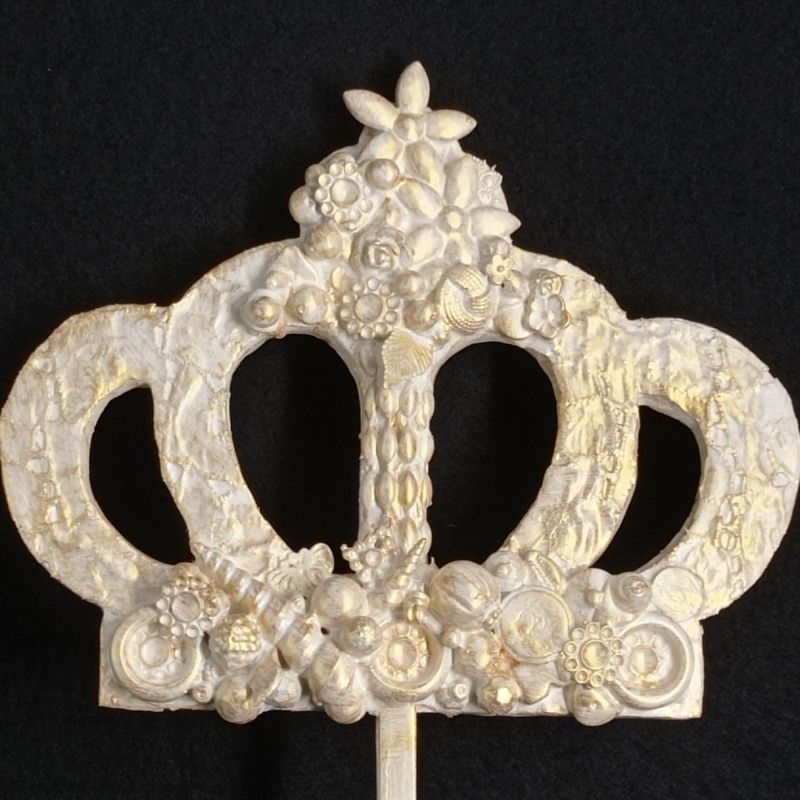 Corona del rey Baltasar hecha y pintada a mano con bonitos abalorios, es única y esta diseñada con un soporte para su fácil colocación en la punta del árbol.