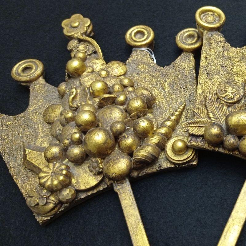 Corona del Rey Gaspar hecha y pintada a mano con bonitos abalorios, es única y esta diseñada con un soporte para su fácil colocación en la punta del árbol.